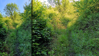 📢 Bajando por este sendero nos encontramos con un parroquiano que se encontraba limpiando el camino de maleza para beneficio de los peregrinos y senderistas, y con él mantuvimos una breve y agradable charla. Por en medio de nosotros pasa un ciclista a toda pastilla que casi no se come el muro del camino, a lo que el señor va y dice: "Que prisa tendrá la gente por morirse, con lo bonita que es la vida y las cosas que hay para disfrutarla"
